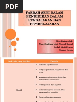 Faedah Seni Dalam Pendidikan Dalam Pengajaran Dan Pembelajaran Pdf