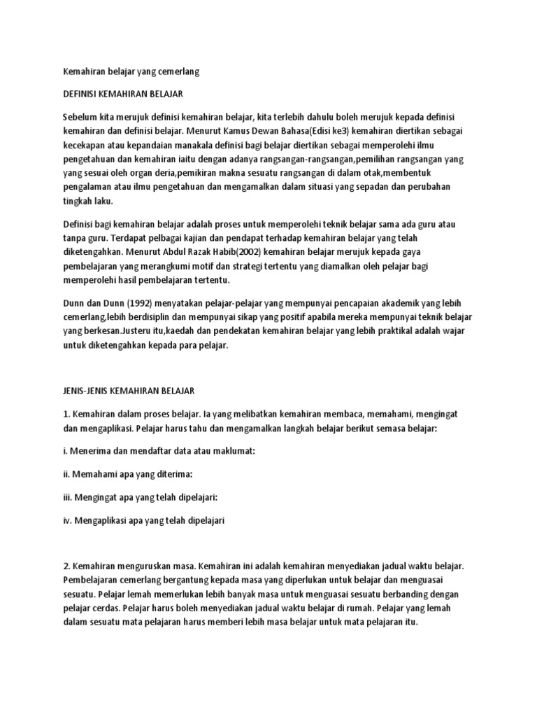 Memperkembangkan kemahiran belajar vii. Kemahiran membaca merupakan asas kepada pembentukan diri ke arah memperoleh ilmu. Dapatkan ide pokok hanya dari judul tadi.