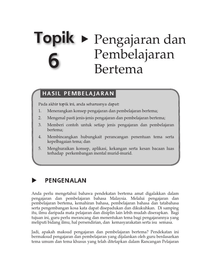 Topik 6 Pengajaran Dan Pembelajaran Bertema Pdf Pdf