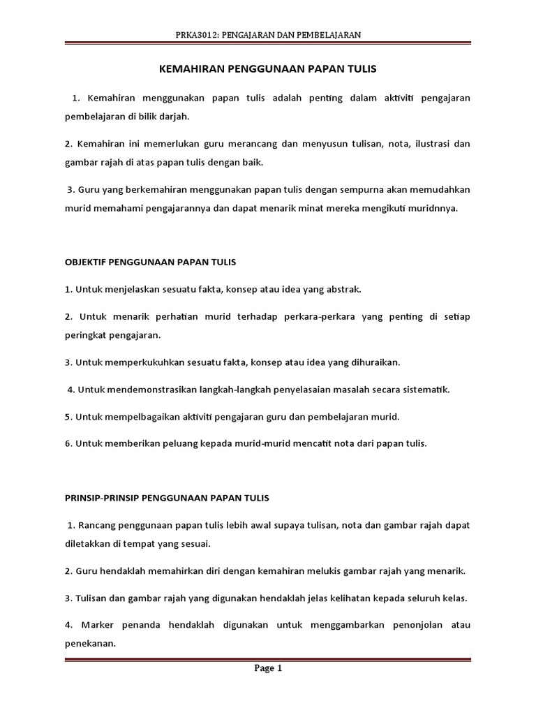 Kemahiran Penggunaan Papan Tulis Mar Waa Pdf