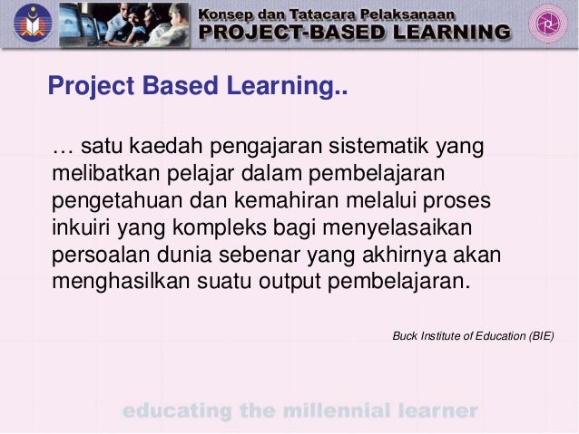 Project Based LearningPBL merupakan suatu kaedah pengajaran dan pembelajaran yang menggunakan kaedah pemusatan murid dan menekankan kolaborasi antara guru dan pelajar dalam mempelopori sesuatu perkara atau topik secara penyempurnaan projek. Diperoleh Februari 9 2 011 daripada. A Middle School Computer Technologies Journal 51.