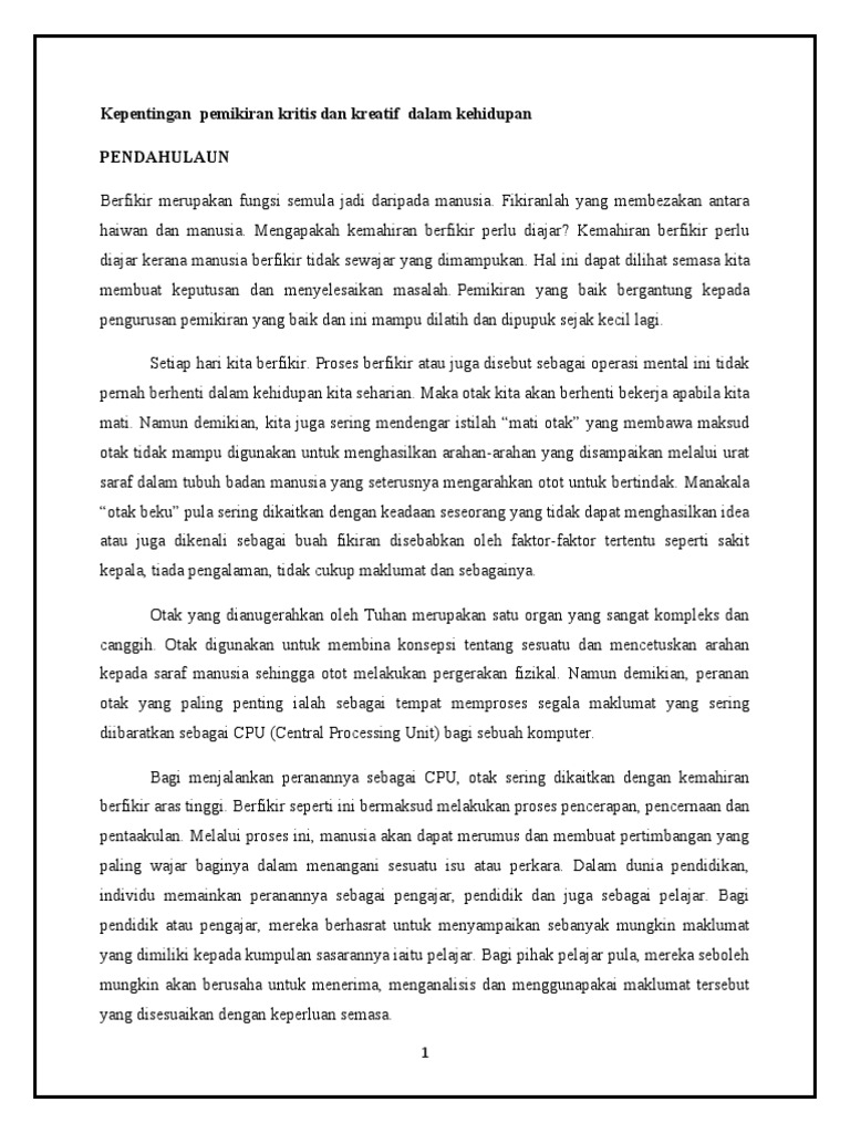 Kepentingan Pemikiran Kritis Dan Kreatif Dalam Kehidupan Pdf