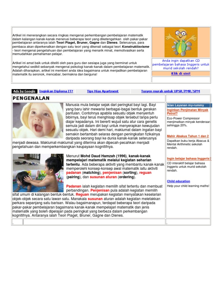 Artikel Ini Menerangkan Secara Ringkas Mengenai Perkembangan Pembelajaran Matematik Dalam Kalangan Kanak Pdf