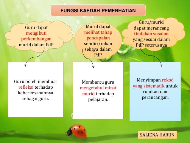 Kaedah pemerhatian dalam pentaksiran. Tanpa aspek-aspek utama ini perancangan program dan strategi pengajaran guru tidak akan dapat dilaksanakan. Mempunyai kemahiran untuk memilih cara pemerhatian yang sesuai bergantung pada kemahiran dan pengetahuan guru. Dalam pelaksanaan Pentaksiran Bilik Darjah PBD guru menentukan hasil pembelajaran yang akan dicapai oleh murid berdasarkan objektif pembelajaran yang ditentukan dari Standard Kandungan dan Standard Pembelajaran.