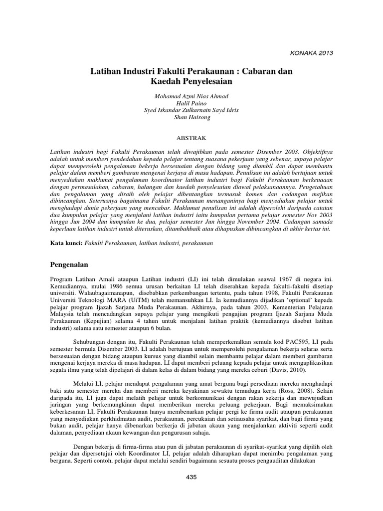 60 Latihan Industri Fakulti Perakaunan Cabaran Azmi Nias Pp 435 443 Pdf