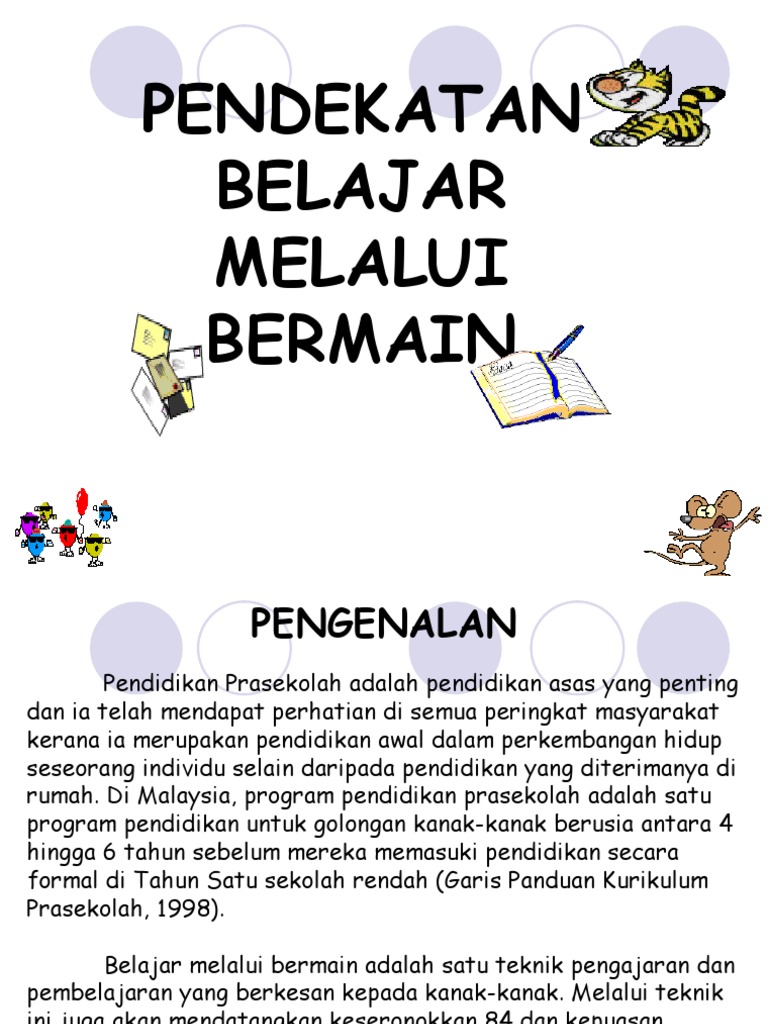Aktiviti bermain dijadikan sebagai teknik yang berkesan dalam pembelajaran di prasekolah. Keperluan dan keselamatan Sedia bahan alatan asas di setiap pusat pembelajaran Menetapkan objektif standard pembelajaran berasas KSPK untuk setiap pusat pembelajaran FASA 1 Pengenalan kepada pusat pembelajaran FASA 2 Perlaksanaan aktiviti di pusat pembelajaran FASA 3 Refleksi bersama murid Refleksi Guru PENTAKSIRAN an an dan an an. Strategi ini merupakan suatu kaedah pengajaran dan pembelajaran yang pesat berkembang dalam zaman moden ini.