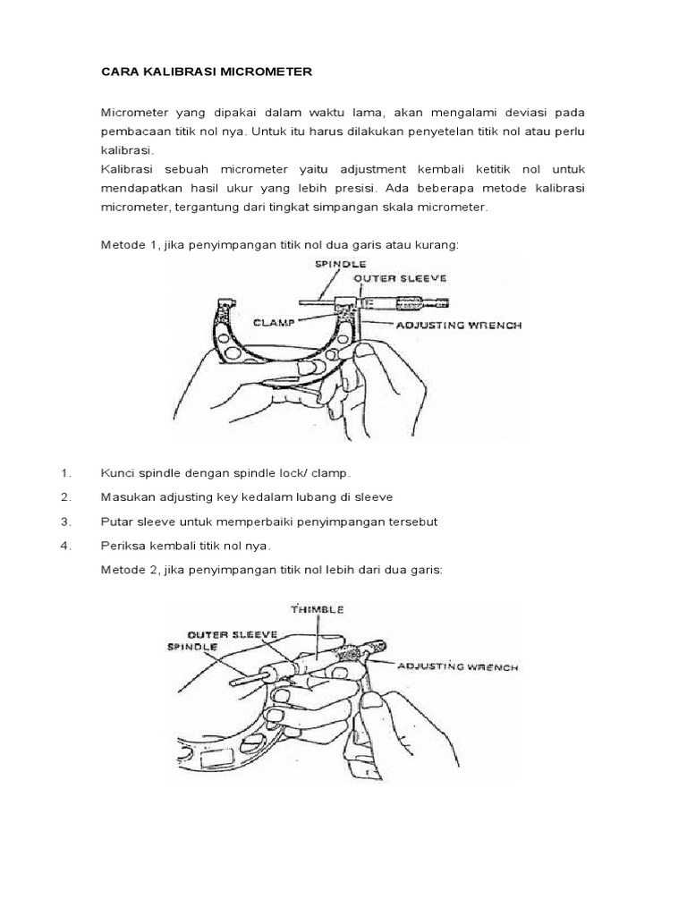 Jika kesalahan dari 002 mm 2 kolom putar outer sleeve sampai O lurus. Kalibrasi alat ukur. Micrometer adalah Alat ukur yang sangat teliti di gunakan untuk pengerjaan yang memerlukan keteitian dan ketepatan yang tinggi contohnya adalah pengerjaan mesin bubut pengerjaan mesin frais.