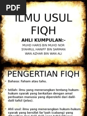 Kaidah dalam memahami dan merumuskan hukum syara ini disebut dengan ushul fiqh. Asal pada manusia.