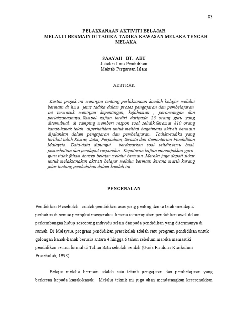 IA merupakan analisa berupa kritik membangun maupun menjatuhkan dari penelitian yang sedang dilakukan terhadap topik khusus atau pertanyaan terhadap suatu bagian dari keilmuan. Ini kerana saya dapati murid sangat tertarik dengan penerapan kaedah bermain dalam proses pengajaran dan pembelajaran. 33 Kaedah Pengumpulan Data.